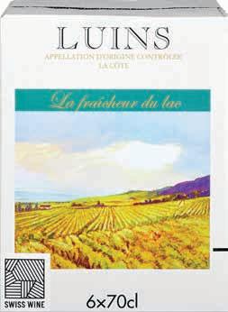 13 Château Bonnet Réserve Bordeaux AOC 24% 9.45 au lieu de 12.50 Carton de 6: 56.70 au lieu de 75.–(235) Bordeaux, 2018, 75 cl La Fraîcheur du lac Luins AOC La Côte Bouteille: 5.35 au lieu de 7.95* (24) Vaud, 2022, 6 x 70 cl Leopardo Vino Spumante extra dry 50% 4.95 au lieu de 9.90 Carton de 6: 29.70 au lieu de 59.40 (71) 75 cl Stone Barn White Zinfandel Rosé 36% 4.25 au lieu de 6.65 Carton de 6: 25.50 au lieu de 39.90 (126) Californie, 2022, 75 cl Verger du Soleil Sauvignon Blanc Pays d’Oc IGP ACTION 17.40 au lieu de 21.–Bouteille: 2.90 au lieu de 3.50 (13) Languedoc-Roussillon, 2022, 6 x 75 cl Mandorla Negroamaro/ Primitivo di Puglia IGT 40% 37.80 au lieu de 63.–Bouteille: 6.30 au lieu de 10.50 (529) Les Pouilles, 2022, 6 x 75 cl Comte de Terrefont Châteauneuf-du-Pape AOC 20% 15.95 au lieu de 19.95 Carton de 6: 95.70 au lieu de 119.70 (71) Côtes du Rhône, 2019, 75 cl Château Janon Bordeaux AOC 28% 4.95 au lieu de 6.95 Carton de 6: 29.70 au lieu de 41.70 (10) Bordeaux, 2021, 75 cl IP-SUISSE Côto Jean-René Germanier Dôle du Valais AOC 23% 9.95 au lieu de 12.95 Carton de 6: 59.70 au lieu de 77.70 (6) Valais, 2021, 75 cl 91 POINTS DECANTER OR GILBERT & GAILLARD 88 POINTS JAMES SUCKLING 1 ÉTOILE GUIDE HACHETTE 33% 31.95 au lieu de 47.70* 90 POINTS FALSTAFF OR CHALLENGE INTERNATIONAL DU VIN