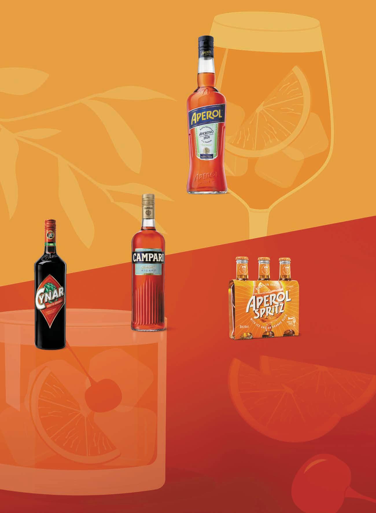 CYNAR BITTER 16,5 % vol., 1 litro CAMPARI BITTER 25 % vol., 1 litro APEROL BITTER 11 % vol., 70 cl HIT APEROL SPRITZ 9 % vol., 3 × 20 cl DRINK RESPONSIBLY RAMAZZOTTI CREMA 17 % vol., 70 cl MOLINARI SAMBUCA EXTRA 40 % vol., 70 cl VECCHIA ROMAGNA BRANDY 38 % vol., 70 cl MARTINI VERMOUTH Rosso / Bianco 15 % vol., 1 litro MARTINI NON-ALCOHOLIC Floreale / Vibrante 75 cl I CLASSICI ITALIA DALL’ HIT 16.40 CHF 21.95 CHF 14.35 CHF 11.90 CHF 14.95 CHF 23.45 CHF 20.50 CHF 11.50 CHF INVECE DI 13.90 CHF 10.40 25%