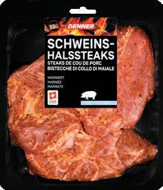 Bistecche di collo di maiale BBQ Denner marinate, ca. 480 g, per 100 g
