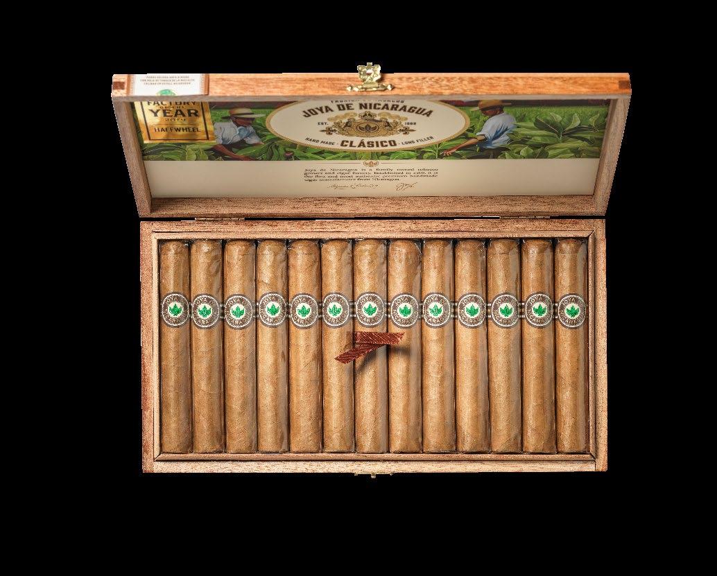 Joya de Nicaragua Clásico Robusto roulés à la main, 25 pièces Provenance Nicaragua Module Robusto Longueur 12,7 cm Diamètre 20 mm Puissance douce à moyennement aromatique Arômes douceur légère (cannelle et nougat), avec des notes âpres comme la noix de muscade; fumée finement épicée et crémeuse Durée de combustion env. 60 minutes