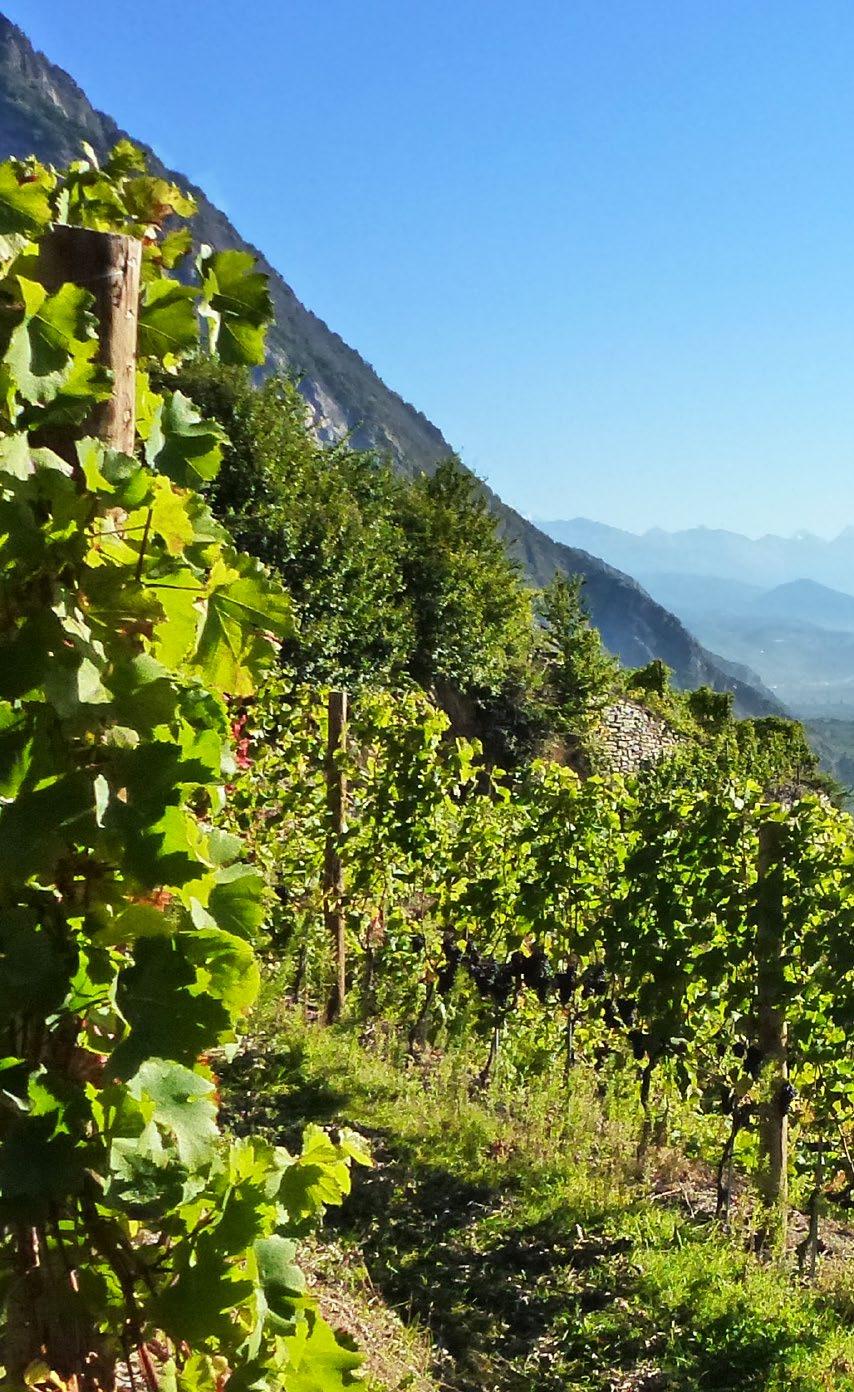 Dans la principale région viticole suisse, des vignobles spectaculaires, souvent en terrasses, s’étendent le long du Haut-Rhône. La vallée s’est formée il y a environ 20 000 ans suite au retrait des glaciers. Aujourd’hui, la région bénéficie d’un climat particulièrement sec et ensoleillé, avec environ 650 millimètres de pluie et 2500 heures de soleil par an. Ce microclimat est renforcé par le foehn d’automne, ce qui favorise la culture de variétés à maturité tardive. Il permet également de cultiver la vigne à des altitudes nettement plus élevées qu’ailleurs dans le pays. Par exemple à Visperterminen, où les raisins de Heida poussent à 1100 mètres d’altitude.