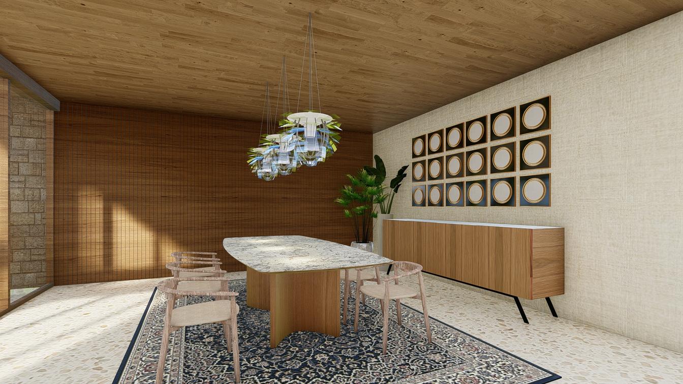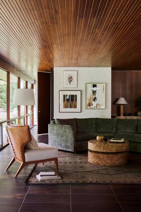 Mobiliario y muro acabado en madera Plantas Iluminacion natural Muros de colores calidos Muebles comodos Luminaria claras