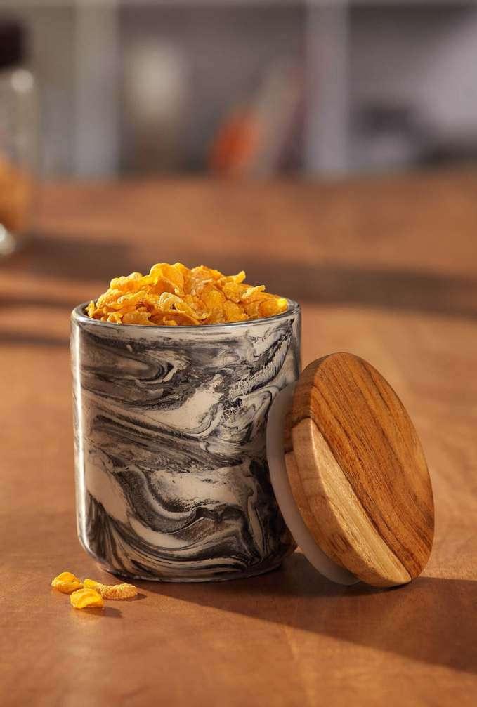 Amber Love Ceramic Jar With Wooden Lid- Small