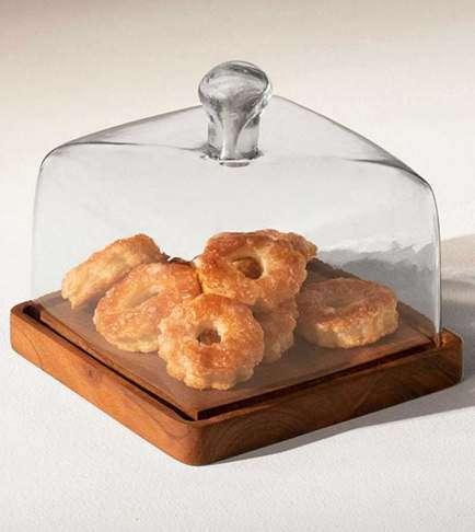 Carbon Ceramic and Wooden Cake Stand