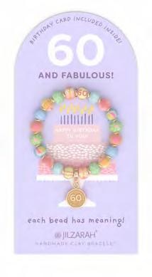 A vibrant collection of handmade clay beaded bracelets for milestone birthdays 40, 50, 60, & 70, plus two joyful styles for any birthday! Each comes with a cheerful insert card highlighting the perks of each new decade and space for a heartfelt message.