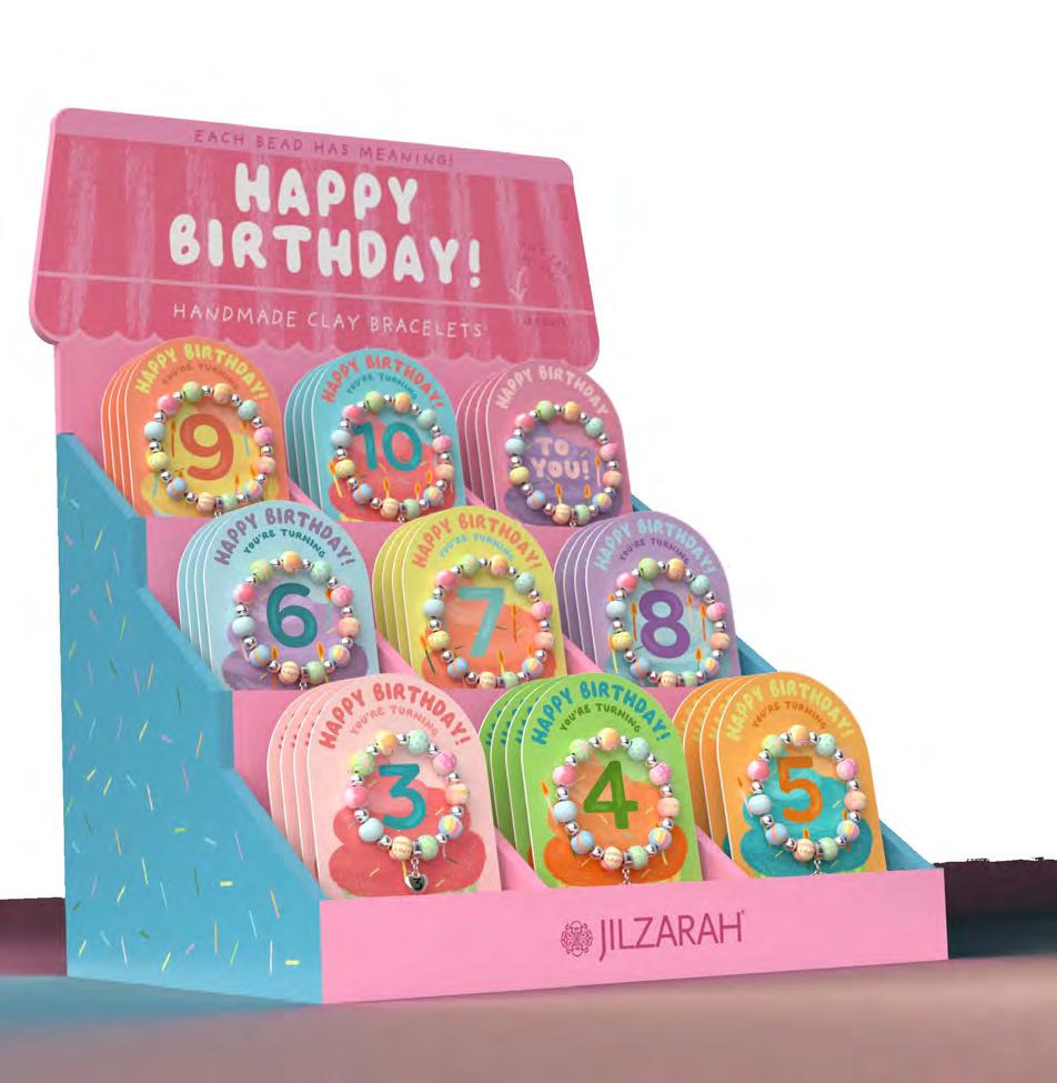 Handmade clay beaded bracelets designed for ages 3 to 10, plus a special birthday style for any age! Each bracelet features celebratory bead patterns and includes a personal message card crafted with love to mark their special day.