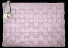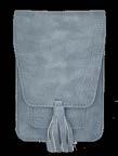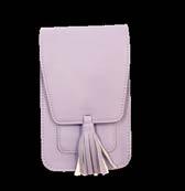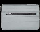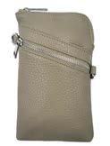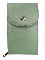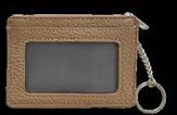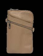 9” W x 4.75” H x .25” D Can fit larger cell phones and a passport. Top zipper closure is 7.25” long. A perfect match to our faux suede Taylor Tote (pg.20)