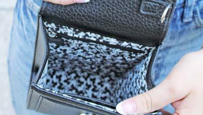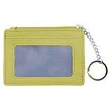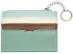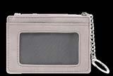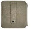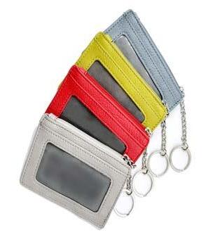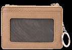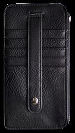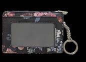 RFID-protected built-in card slots, clear ID slip, full size bill compartment, zipper pockets for coins.
