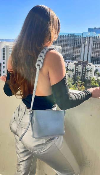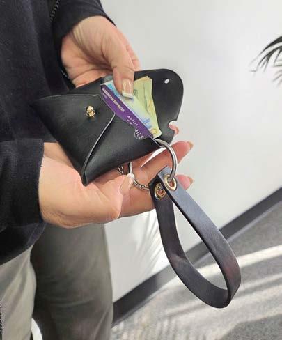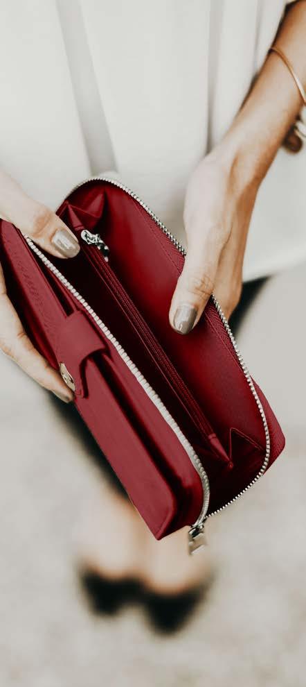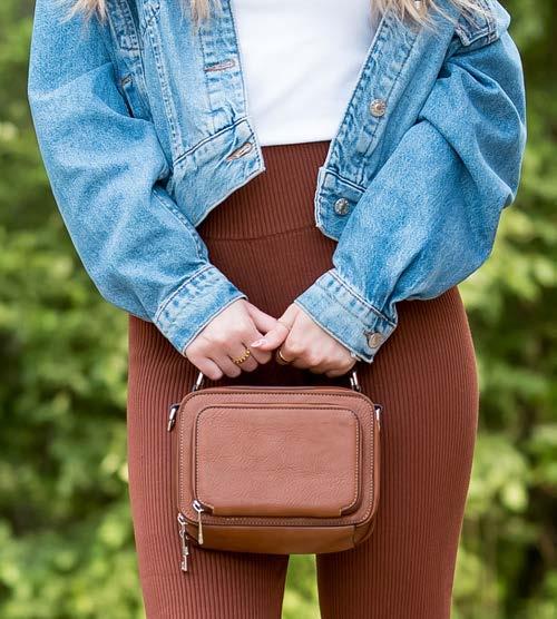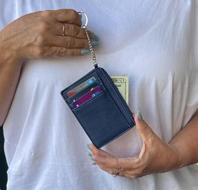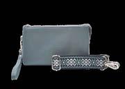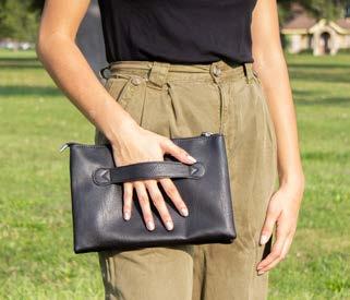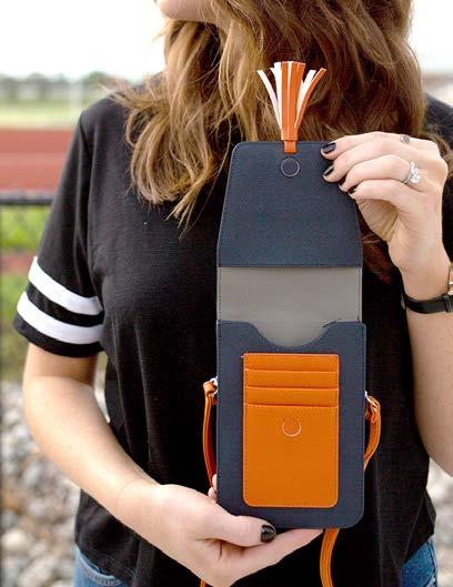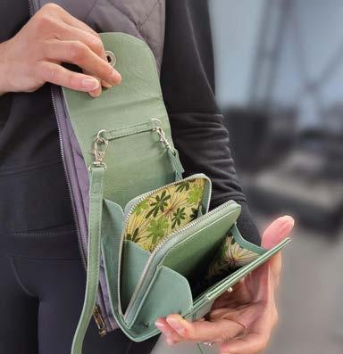 The perfect organizer with three separate compartments, including a center zippered compartment. Includes wristlet and two straps: vegan leather and guitar strap (more options on pg.41). Carry a phone, sunglasses, lipstick and more. You can even fit a small wallet, but with four built-in RFID protected card sleeves, you won’t need to! INDIVIDUAL
