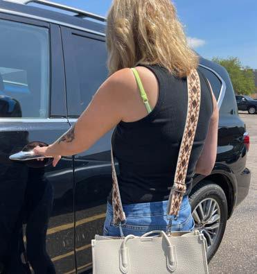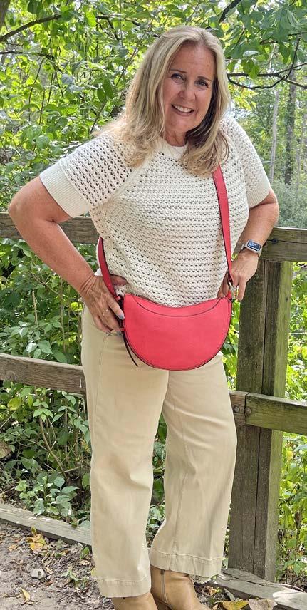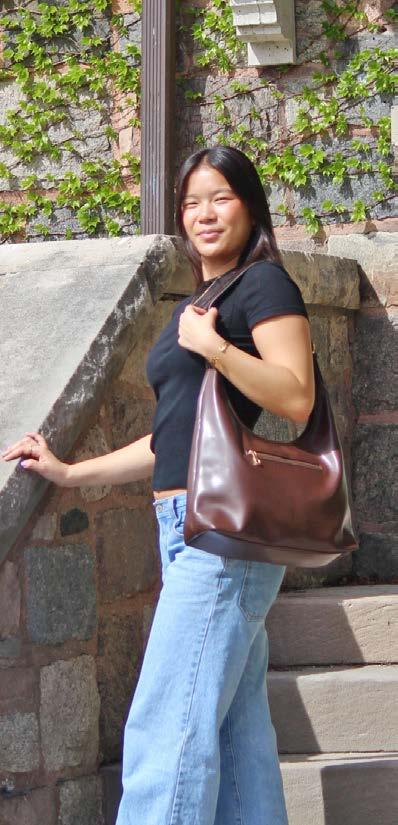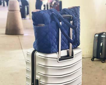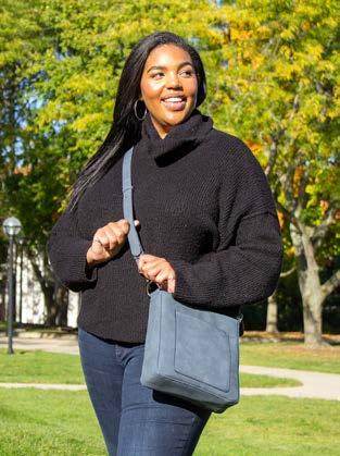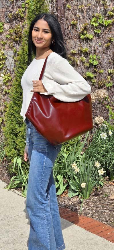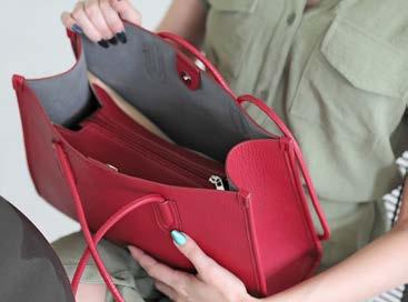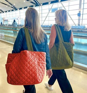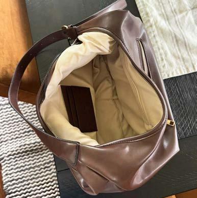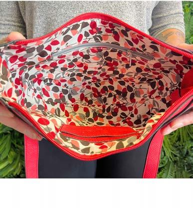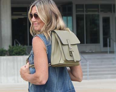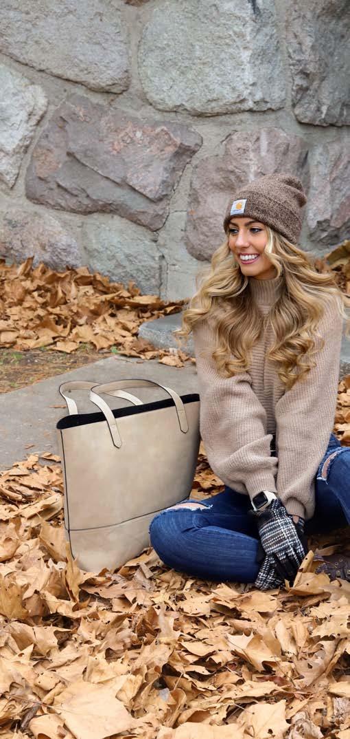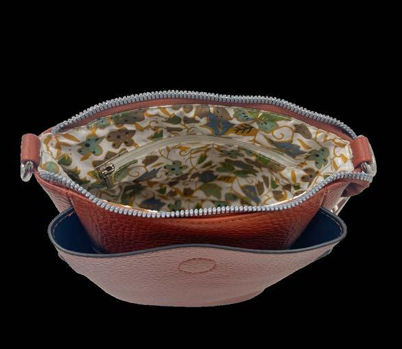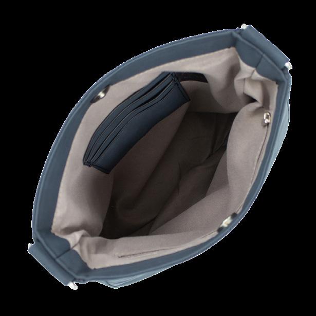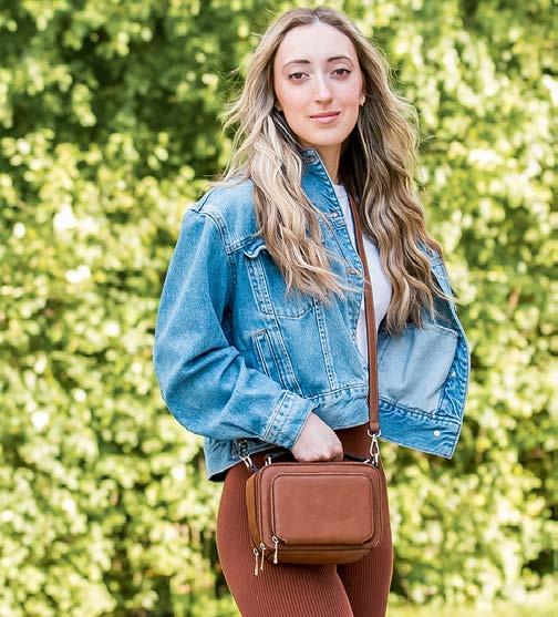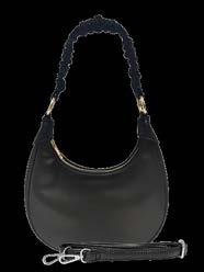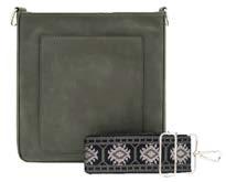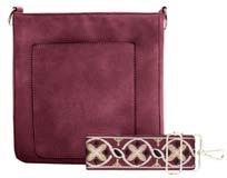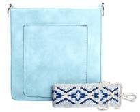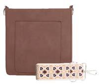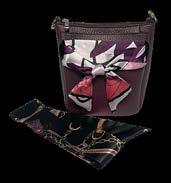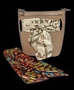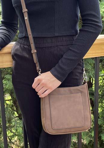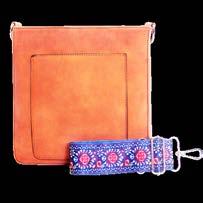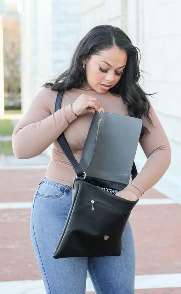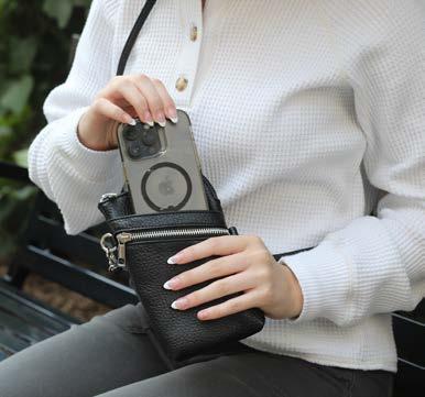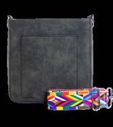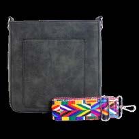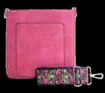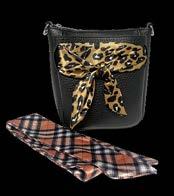 One bag, two looks. Swap your style between the two included (and more available p.40) scarf accents. Enjoy the function of a zippered top, magnetclose front pocket, adjustable strap, RFID protection, and an inside zipper.