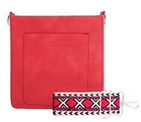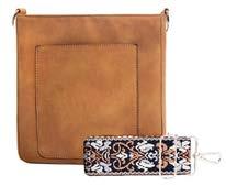The Ashley crossbody features soft & rich vegan suede with vibrant colors. Unique guitar straps complimenting each design. It also comes with a long strap to match the bag. Other features include an open front pocket, snap closure, interior zipper pocket, and built-in RFID-protected card slots.