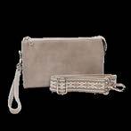 Detachable crossbody strap included, RFID-protected card sleeves built-in, front and side zipper pockets.