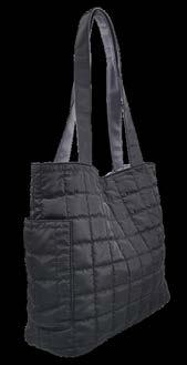 6” W x 8.25” H x 1.5” D | RFID PROTECTED Nylon tote with side pockets, RFID-protected card slots built-in.