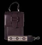 Large enough to fit all you need but still small and compact. With a 2 in. depth, there is room inside. Wear as a satchel or attach the coordinating guitar strap for a fun, handsfree look. On the backside, an open pocket for phone convenience. Under a magnet snap on the front, you will find an open pocket. Inside is a zipper pocket and 3 RFID protected card sleeves.