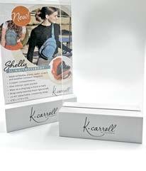 Our display signs come with a branded base and high quality acrylic, customizable frame and product inserts. Perfect for table or shelf displays, or anywhere you display your K•Carroll handbags!