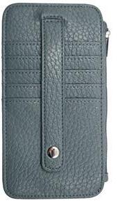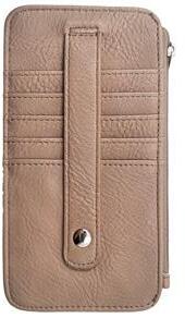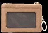 RFID-protected built-in card slots, clear ID slip, full size bill compartment, zipper pockets for coins.