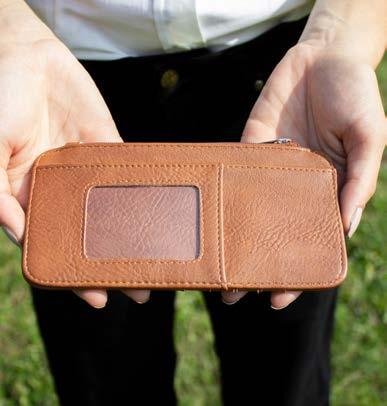 Vegan leather wallet, RFIDprotected built-in card slots, full size bill compartment. CARD