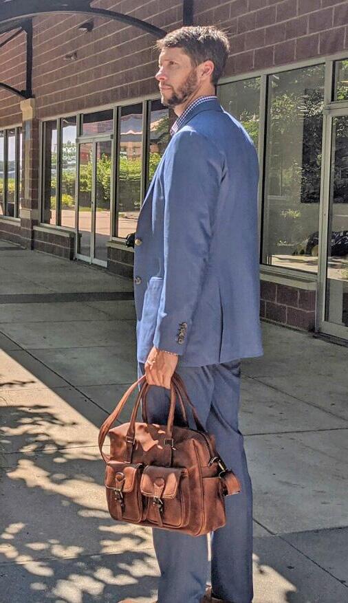 15” W x 11.5” H x 4” D | RFID PROTECTED Vegan leather, padded laptop compartment, multiple pockets for organization, RFIDprotected built-in card slots,canvas-lined.