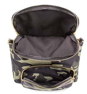 Three in one bag! Wear it as a crossbody or as a backpack with an adjustable strap that easily detaches. Backside exterior zipper pocket, and on the front side you get a long open pocket for easy phone access. The interior contains a zippered pocket, 3 RFID card sleeves, and one large compartment.