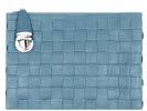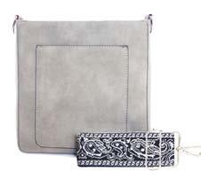 9” W x 4.75” H x .25” D Can fit larger cell phones and a passport. Top zipper closure is 7.25” long. A perfect match to our faux suede Taylor Tote (pg. 7)!