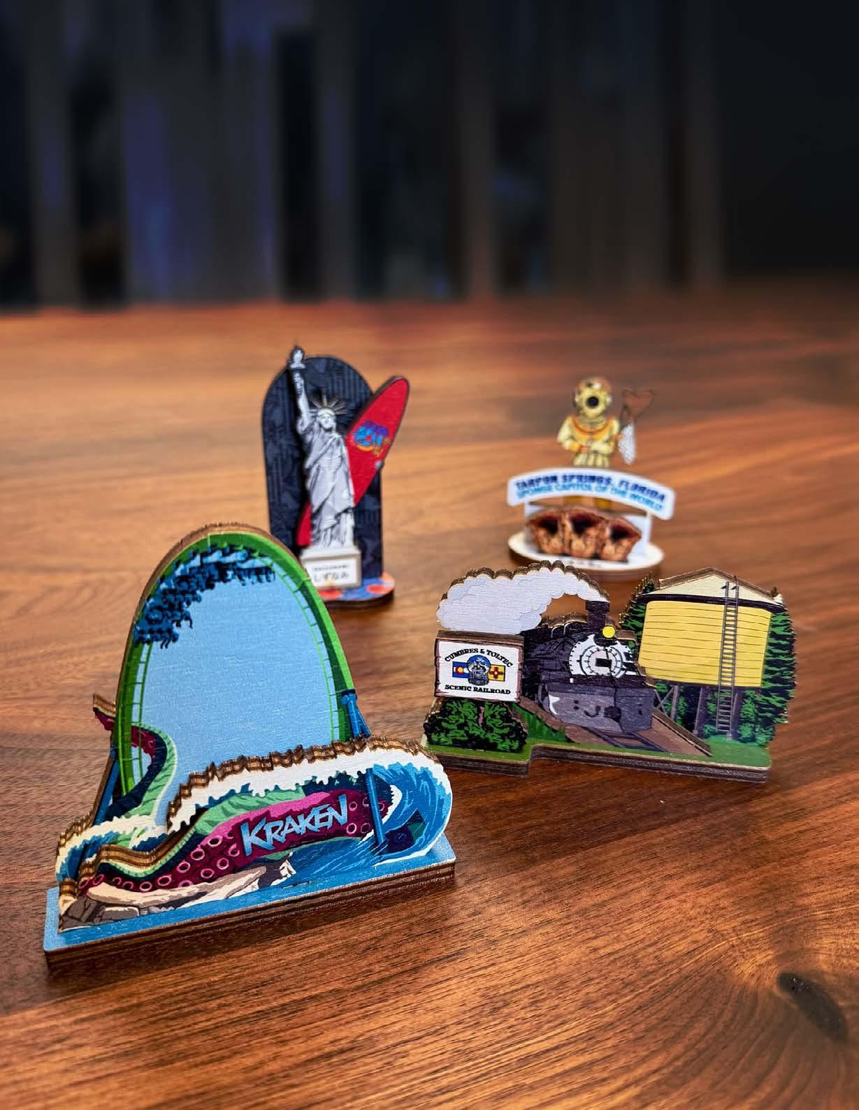 Our Artist Series StandeeTM line features iconic, recognizable landmarks paired with signage and wildlife that is unique to each setting. These StandeesTM function as perfect memorabilia for travel destinations.