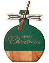 9.75 x 8” Acacia Bevel Board Green Medium w/ gold spreader, Christmas Forest Napkin and Ribbon | PC25