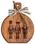 9.75 x 8” Acacia Bevel Board White Medium w/ gold spreader, Nutcracker Napkin and Ribbon | PC25