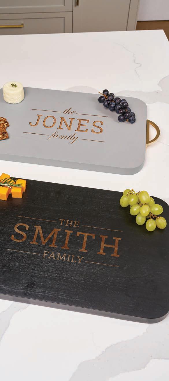 Introducing our latest collection of cutting boards and charcuterie essentials, created in collaboration with Meg Quinn! In response to popular demand, we’ve expanded our offerings even further to include cutting boards with beautifully engraved charcuterie maps, cheese spreader knives engraved with the names of cheeses they’re perfect for, and now, an allnew charcuterie kit. This kit has everything you need to craft stunning charcuterie boards, plus a recipe booklet to guide you written by Meg Quinn herself. Perfect for hosting, this collection combines style and function for a truly memorable presentation.