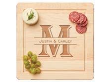 Our artisan cheese boards in maple & walnut are perfect for serving appetizers, quick prep or daily use. Personalize for a memorable gift. Our single-letter monogram artisan boards make a great grab & go gift for a gift-bar program. Learn more about single-letter monogram recommendation in the Gift Bar section of this catalog.