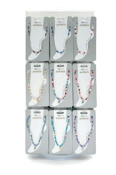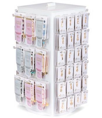Includes 4 each of 12 sparkle styles, complete with our $20 peg-acrylic spinner display, and offset with 4 FREE bracelets.