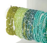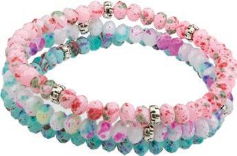 Petite Crystal Bracelets bring delicate beauty to any stack and designed to mix, match and multiply. Featuring 2mm round cut crystals offered in 34 solid and variegated colors – each accented with gold or silver bead spacers in fun random patterns. Don’t miss our high-performance assortments and prepacks on page 6.