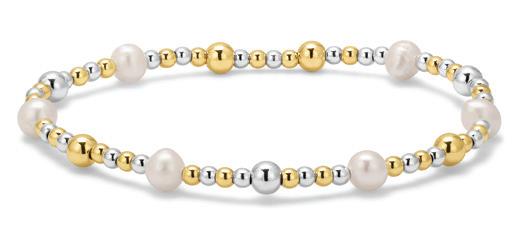 Our expanded Fashion Fortune bracelet lineup delivers polished, high-rotation style. Brass based in gold and silver finishes and a protective coating, designed to layer or stand alone. This stretch bracelet program delivers a winning program and simplifies assortment planning. Eighteen new styles featuring freshwater and baroque pearls add texture and organic elegance. Strong visual impact and repeat-purchase pricing make this collection a reliable performer.