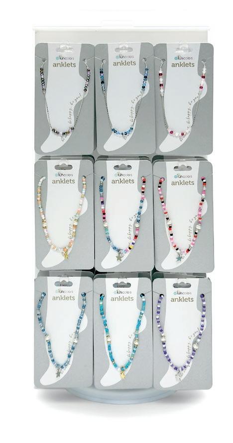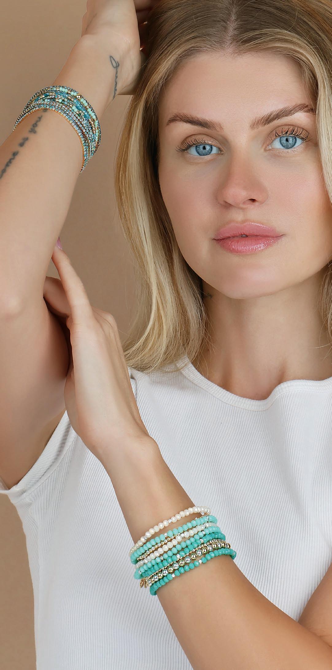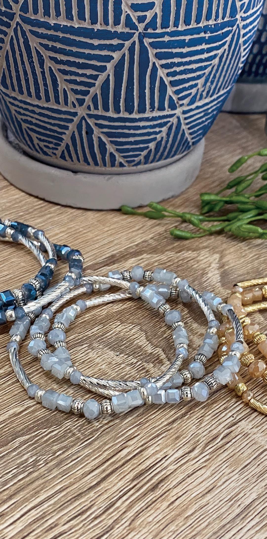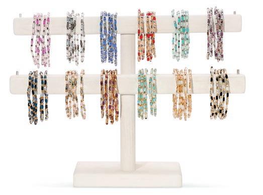 Petite Crystal, Tennis and Gold & Silver beaded bracelets designed in thoughtful colorways, sparkle in a slimmer, more wearable scale. Our effective merchandising solutions provide a lowcost, high-margin program with broad demographic appeal. Please refer to the assortment options presented on page 6.