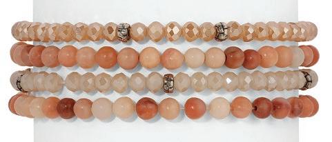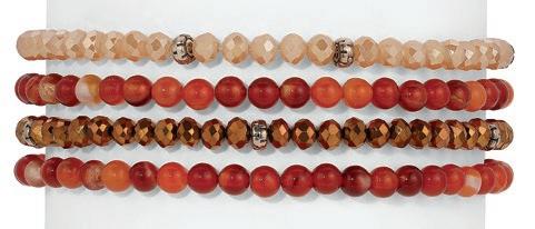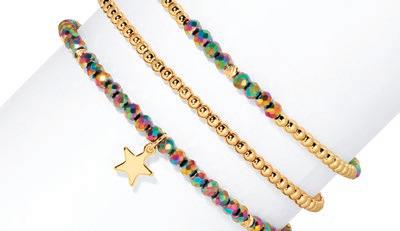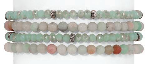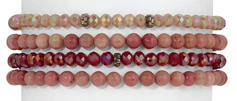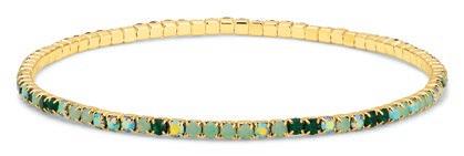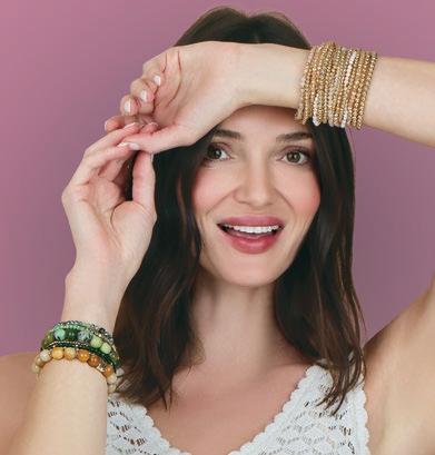 A petite, yet contemporary twist on the longtime Crystal Tennis favorite, each style features refined petite crystal settings in solid or random mixed patterns designed by our team, in both gold and silver tones. Delicate, colorful, and lightweight these stretch bracelets bring dimension and sparkle into everyday assortments. Don’t miss our high-performance assortments and prepacks on page 6.