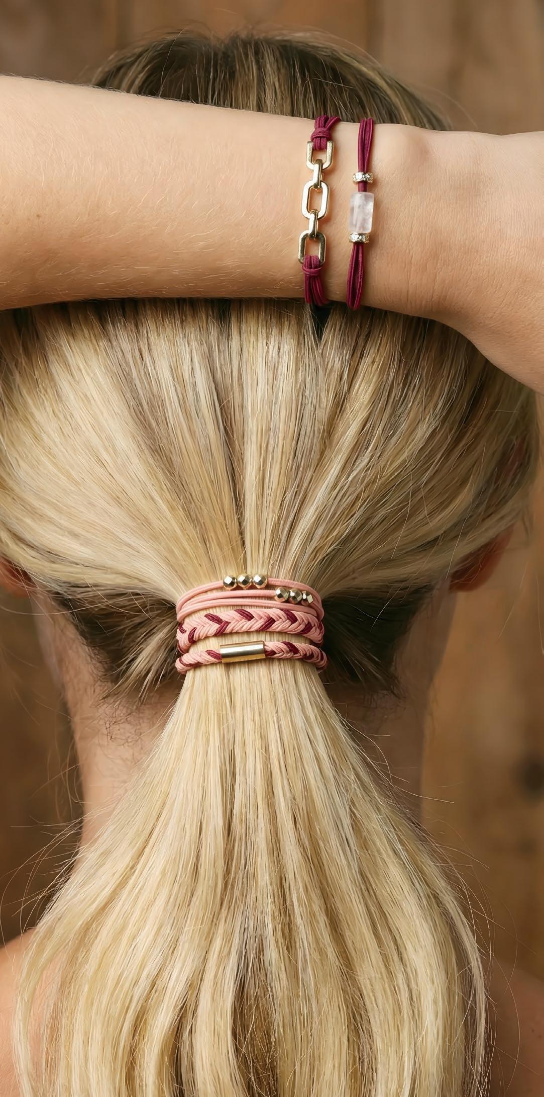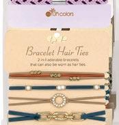 Our Hair Ties deliver everyday versatility in curated color sets that range from playful to professional. Designed to double as five stretch bracelets, this dual-purpose accessory encourages add-on sales while offering strong impulse and gifting appeal at retail. Easy to merchandise near checkout or apparel, these sets provide a low-cost, high-margin program with broad demographic appeal.