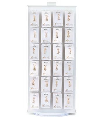 Options are plentiful with our silver and gold mini crystal assortment. Includes six each of 52 great styles, complete with our $65 wood spinner and offset with 24 FREE bracelets.