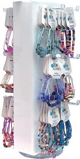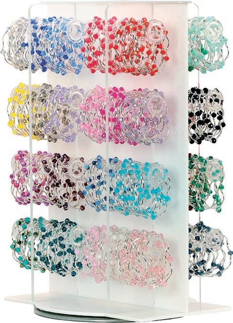 Includes 4 each of 12 corded styles complete with our $20 peg-acrylic spinner display, and offset with 4 FREE bracelets.