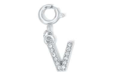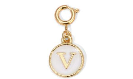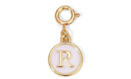 2 each of 24 rhinestone gold, rhinestone silver, pink enamel and white enamel initial charm styles. Includes $40two-sided display, offset with 12 FREE charms