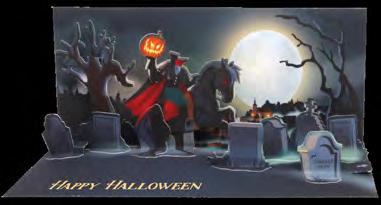 Not included in Halloween corrugate program. Limited quantities available | Order in increments of 6 per sku | These cards are non-returnable Treasures: W $4.50 SRP $8.99 | Panoramics: W $5.50 SRP $10.99 Panoramics with sound/light: W $7.50 SRP $14.99