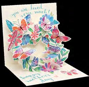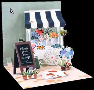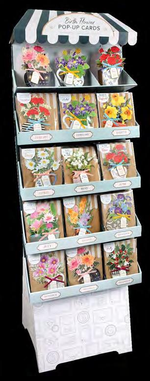 Intr oducing the Birth Flower Collection, our newest greeting card range that celebrates the meaningful flowers that s ymbolize each month. Pop-up flowers are paired with a tag highlighting the recipient’s greatest qualities. Cards ar e merchandised in a flower cart-inspired display with open samples, or can be purchased in units of six.