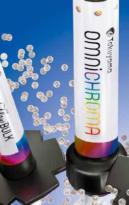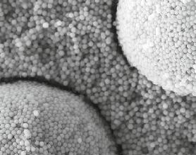 Egyértelműen felismerhető a SEM-felvételen: az OMNICHROMA gyöngyszerkezete a hagyományos módon zúzott részecskékhez képest.