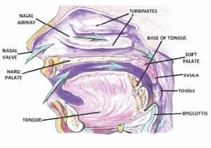 értékelik; azonban ritkán vizsgálják a betegeket az elzáródások eredetére vonatkozóan. Ennek eredményeképpen nagyon gyakran orrelzáródásuk van, és a légutak fizikális vizsgálata vagy képalkotó vizsgálata nélkül kapnak CPAP készüléket, amely a maszk szivárgásával kapcsolatos problémákhoz vezet. Az OSA hatékony kezelési tervének első lépése egy teljes fejre kiterjedő CBCT-vizsgálat elvégzése az elzáródás 4 pontjának meghatározására. (A 4 elzáródási pont (8. ábra) és a CBCT (i-CAT) segítségével történő értékelés részletes magyarázatát lásd az Orthodontic Practice US 2015. márciusi/áprilisi számában [16]). A páciens 4 obstrukciós pontjának – orr-szájpad, orr-garat, velopharynx és oropharynx – vizsgálata kimutatta, hogy a pozíciófüggő apnoe (nyelvalap és velopharynx) mellett orrdugulása is volt (lásd a 9. ábrán látható CBCT-felvételt). Az orrlégúti ellenállás és a BMI a legkorlátozóbb tényezők az OSA-behirdetés
