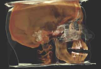 A páciens 3D CBCT lágy szövet renderelése. Szagittális CBCT-felvétel a csontszövetekről és a légutakról.
