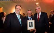 Dr. Myron Nevins (középen) volt az első, aki megkapta a PI Brånemark-díjat a fogászat terén elért életművéért. A díjat Per-Ingvar Brånemark professzor (1929. május 3. –2014. december 20.) tiszteletére hozták létre, és azoknak a klinikusoknak ítélik oda, akik a fogászatot a társadalom javára fejlesztették. 2015 márciusában Mark Ferber (balra) és dr. Robert Gottlander (jobbra) adták át a díjat dr. Nevinsnek a Dental Tribune International és az OEMUS MEDIA által az International Dental Show keretében rendezett Channel3 csoportos fogadáson. (Kép: Dental Tribune International)