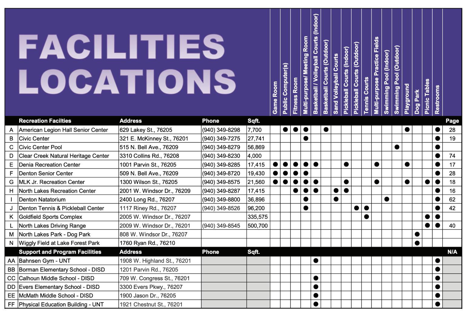 Denton Parks and Rec welcomes all individuals to participate regardless of race, color, religion, sex, national origin, or disability. Relay Texas services are available for the hearing impaired and can accommodate different needs and capabilities by dialing 7-1-1. For more information on accommodations, disability-focused programs, and inclusion in all programs, contact North Lakes Recreation Center, (940) 349-8287.
