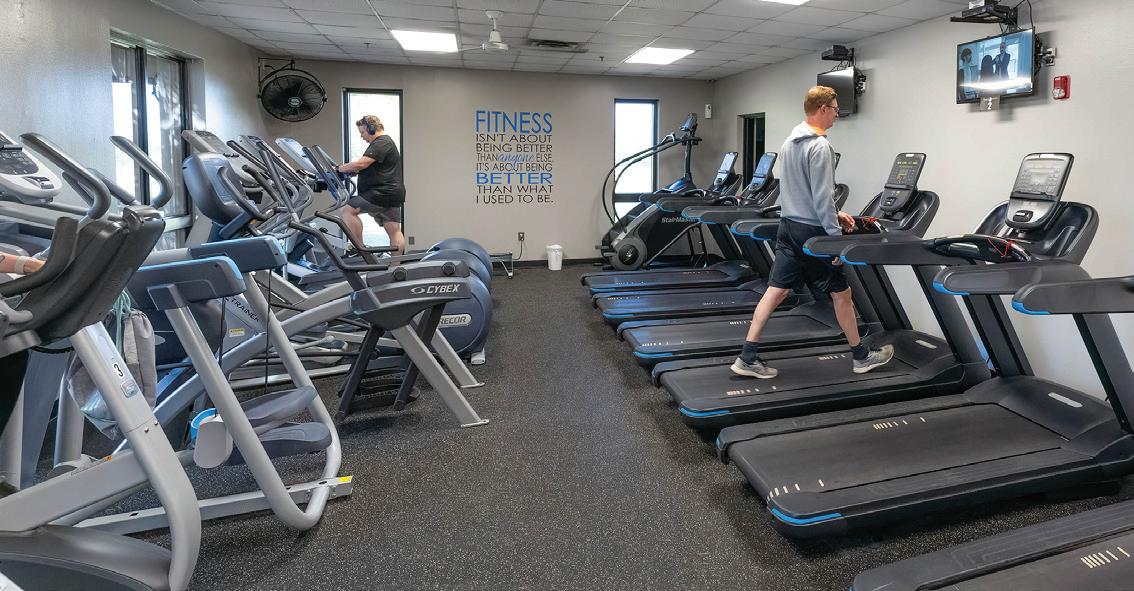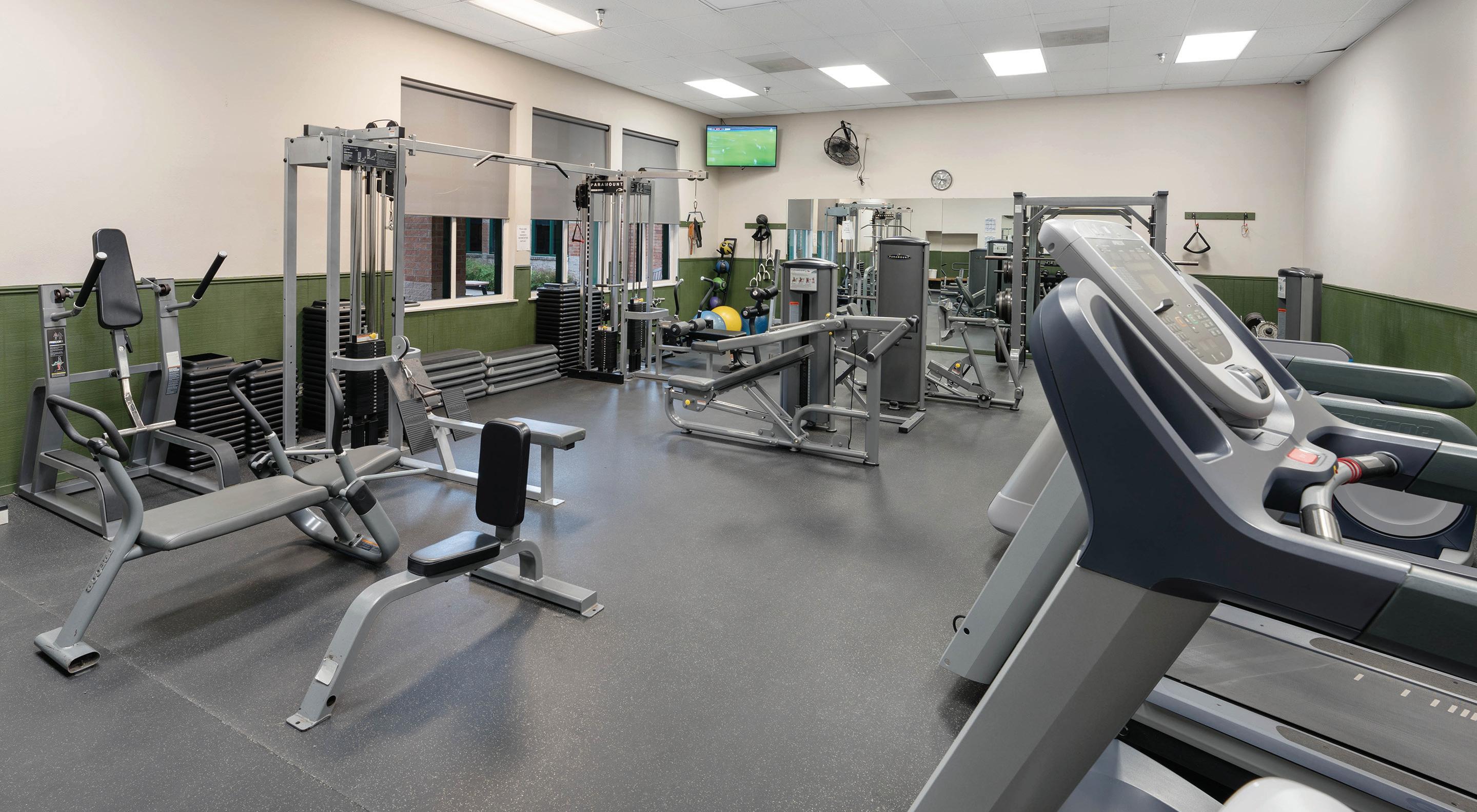 g Fitness rooms include treadmills, recumbent bikes, elliptical trainers, Precor cardio and strength training equipment, and Olympic free weights