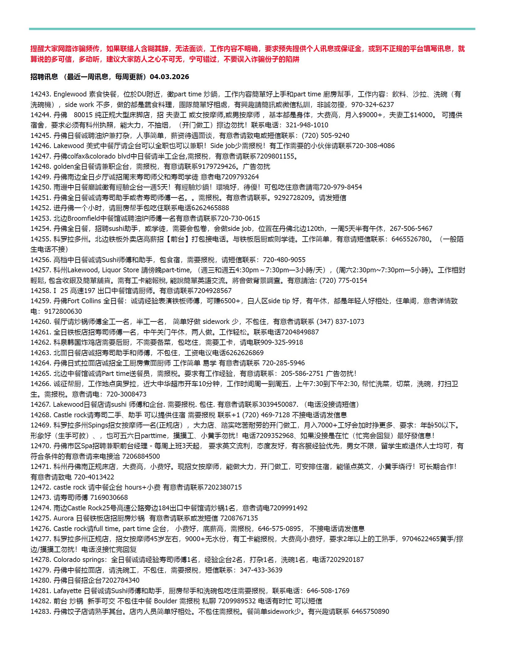 科州华人分类广告2026年4月3日版