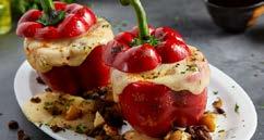 • Coloca el rocoto relleno en una fuente apta para horno y hornea a 180 °C durante 15-20 minutos, hasta que el queso se derrita y el rocoto esté tierno pero firme.