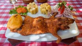 • Calienta abundante aceite en una sartén grande. Coloca el cuy con la espalda hacia abajo y presiónalo ligeramente con una tapa o plato pesado para que quede “aplastado” (de ahí el nombre “chactado”). Fríe hasta que esté dorado y crujiente por fuera (aproximadamente 10-12 minutos por lado).