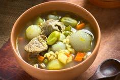 • Añade la cebolla, ajo, zanahoria, papas, habas y chuño (o papa amarilla). Cocina a fuego medio hasta que las verduras estén tiernas.
